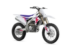 Wersja specjalna YZ250F 50th Anniversary Edition upamiętnia półwiecze produkcji motocykli z linii YZ, która rozpoczęła się w roku 1973. Wówczas Yamaha zdobyła swój pierwszy w historii najwyższy tytuł w Mistrzostwach Świata w Motocrossie. Motocykl jest utrzymany w barwach fabrycznych modeli wyścigowych z lat 90. z białymi owiewkami z fioletowo-różową grafiką, fioletową kanapą i czarnymi kołami. Ten ekskluzywny model jest jednocześnie ukłonem w stronę przeszłości i odważnym spojrzeniem w przyszłość.Nowa generacja YZ250F 50th Anniversary Edition ma całkowicie nową, lekką ramę wykonaną z aluminium, zwarte, białe owiewki i ulepszony silnik o większej mocy z prawdziwie wyścigowym DNA Yamahy. Może mieć malowanie w stylu retro, ale cała reszta tej supernowoczesnej maszyny motocrossowej przepełnia zaawansowana technologia zapewniająca zwycięskie osiągi, dzięki którym Yamaha jest dziś jedną z najbardziej utytułowanych marek w motosporcie.